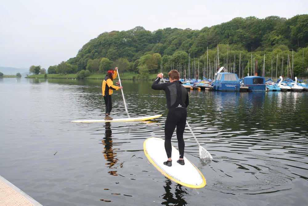Im Freizeitgebiet Kemnade ist ein Wassersportladen vorhanden. Dort sind zwar (noch?) keine SUP Materialien erhältlich, für z.B. Reparatur im Bootsbereich aber bestens ausgestattet. Ebenso im Freizeitgebiet Kemnade gibt es das Sportzentrum Blue Beach. Der Blue Beach verfügt über eine Palette 2010er Naish SUP Boards und hat ein eigenes SUP Team. Ab 2011 sind Schulung und Verleih geplant.