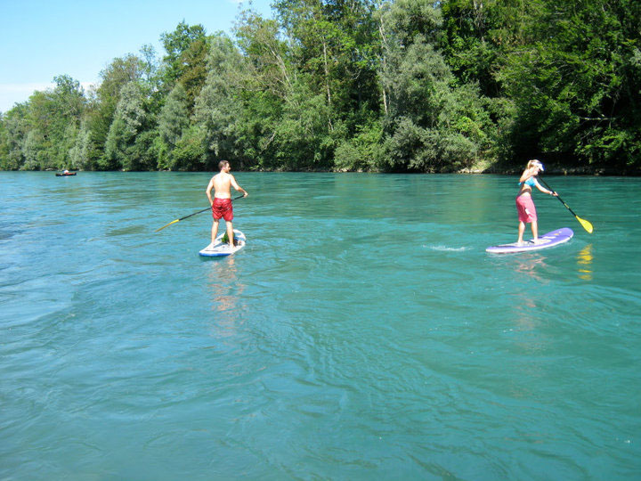 Fluß // Die Aare ist ein 288 km lange Fluss, der bei Koblenz in den Rhein mündet. Im Sommer ist die Strecke zwischen Thung bzw. Uttigen ein riesengrosser Spielplatz am und auf dem Wasser mit wunderschöner Bergkulisse. Die ganze Distanz dauert etwa 3 Stunden – kann aber auch in der Mitte (Münsingen) unterbrochen werden oder es kann auch nur die obere oder die untere Hälfte bepaddelt werden (Uttigen–Münsingen oder Münsingen–Bern)
