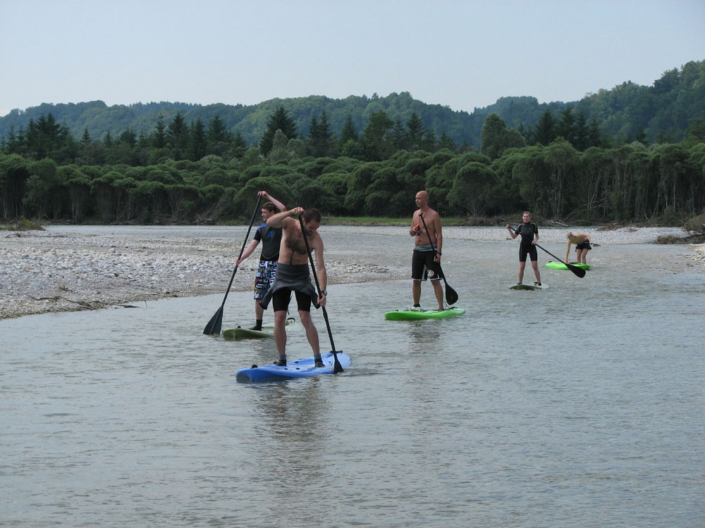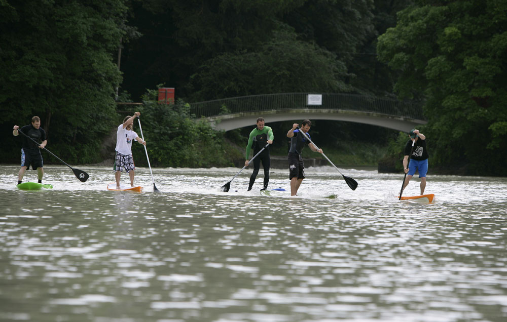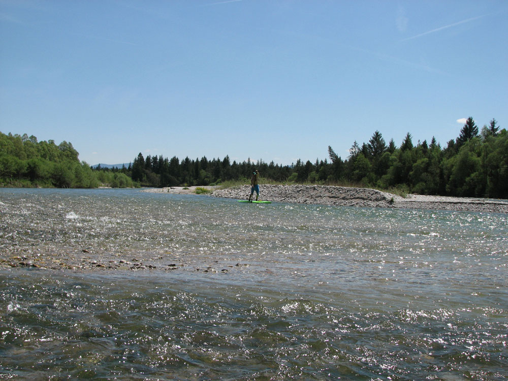 Die Isar ist nur etwas für erfahrene SUP-er, da es gefährliche Stellen gibt, die man kennen sollte. Es empfiehlt sich eine geführte Tour.