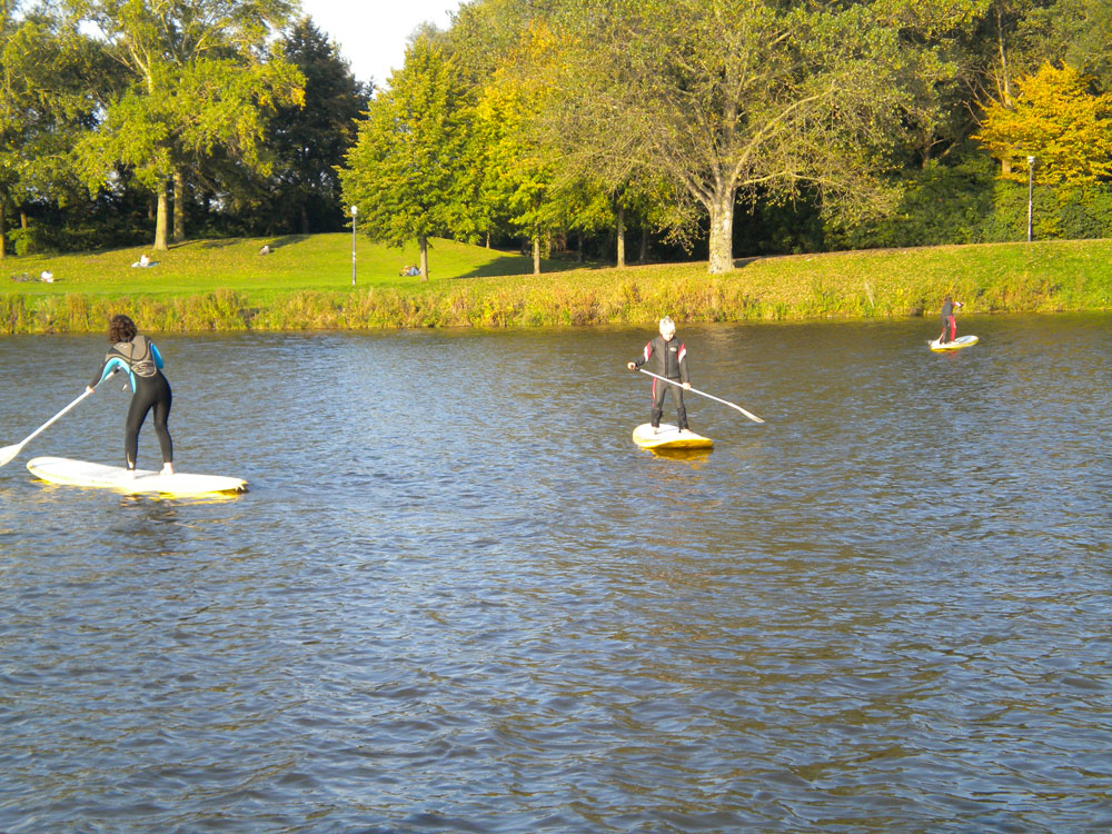 Fast mitten in der Stadt gelegen ist der Werdersee eine perfekte SUP-Oase, die keinen weiten Anfahrtsweg in Anspruch nimmt. Trotz der Stadtlage zeichnet sich der See durch weitläufiges Grün am Ufer aus, Baumbewuchs und kleine Inseln machen eine Tour zu einem schönen Erlebnis. Da der Werdersee trotz seiner Verbindung zur Weser keine Schiffahrtsstraße ist und vielfache Einstiegsmöglichkeiten bietet, ist er ein gutes Revier für Einsteiger, für Tourenpaddler und für Trainingsfahrten. In den Sommermonaten wird der See vor allem von Badenden genutzt, so daß in dieser Zeit erhöhte Aufmerksamkeit gegenüber den übrigen Nutzern des Sees geboten ist. Es gibt eine im Sommer besetzte DLRG-Station am See, so daß in dieser Zeit auch für die nötige Sicherheit gesorgt ist. Sobald es kälter wird, trifft man lediglich die Mitglieder des ortsansässigen Rudervereins auf dem Wasser. Aufgrund der Breite des Sees (bis zu 308m) ist ausreichend Platz vorhanden um sich nicht in Quere zu kommen. Bei einer Gesamtlänge von ca. 5,22 km können auch kleine Touren gefahren werden. Durch das vorgeschaltete Wehr zur einen Seite und der geschlossenen anderen Seite kommt Strömung lediglich bei starkem Wind vor.