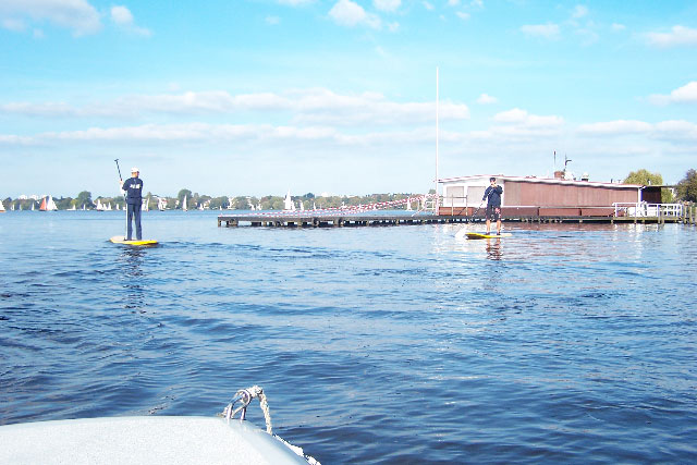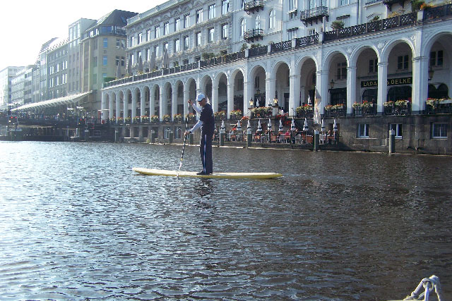 Es gibt an der Aussenalster verschiedene Einstiegsmöglichkeiten. Von diesem lassen sich sowohl die Aussenalster, aber auch die verschiedenen Kanäle rundum schnell erreichen. Der perfekte Spot in Hamburg, wenn man schnell und zentral auf´s Wasser will. Geeignet für jedermann!