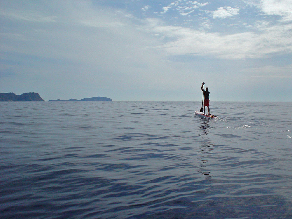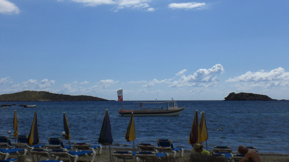 In der Cala Martina an der Ostküste von Ibiza ist ein toller SUP Einstieg möglich. Von hier aus kann man entlang der Küste toll auf einen café con leche nach Sta. Eulalia paddeln oder die vorgelagerten Inseln erkunden.